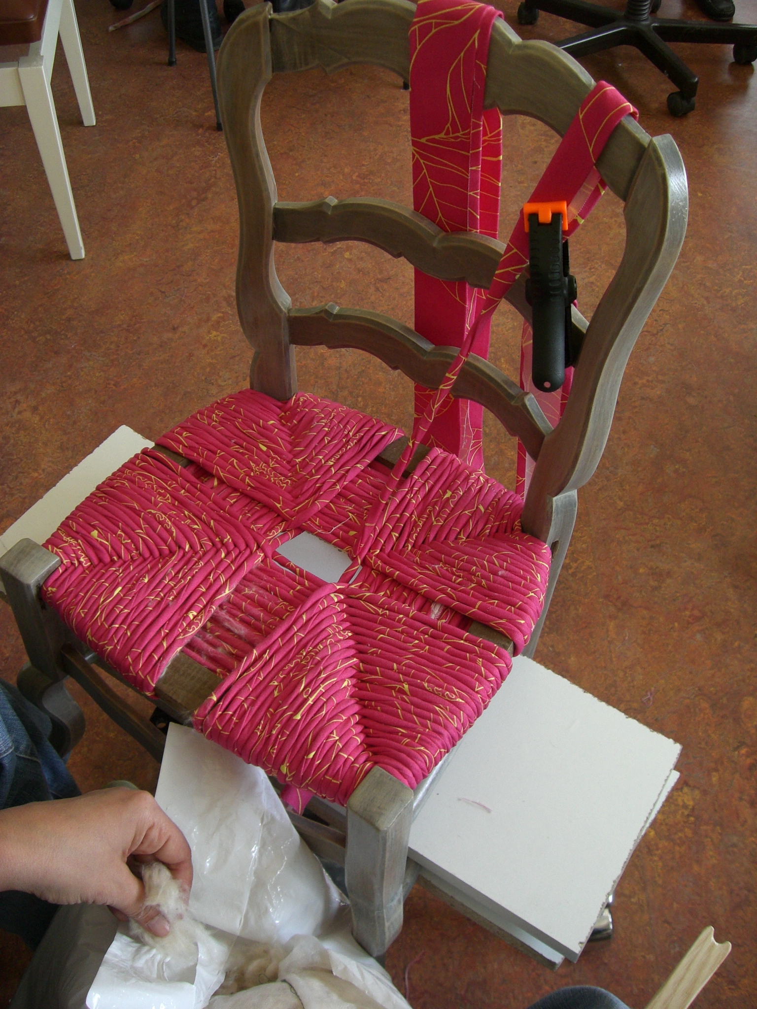 La paille est remplacée par des torons en tissu dont la réalisation met en oeuvre toute la créativité des élèves.